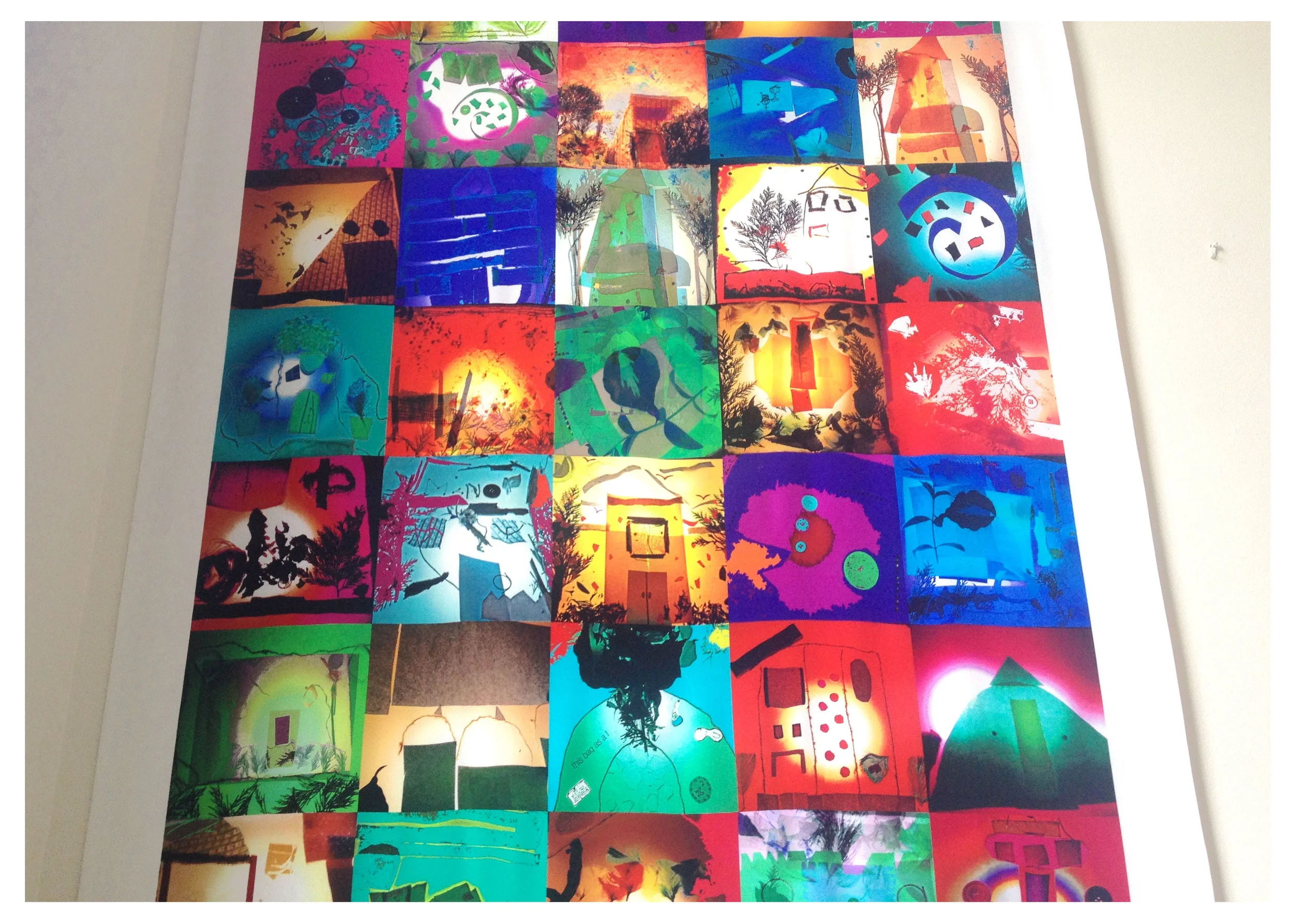 Textile hangings: mixed media including screen print, paint, hand stitch, digital print, digital embroidery. Each approximately 1.2m x 1.2m.
