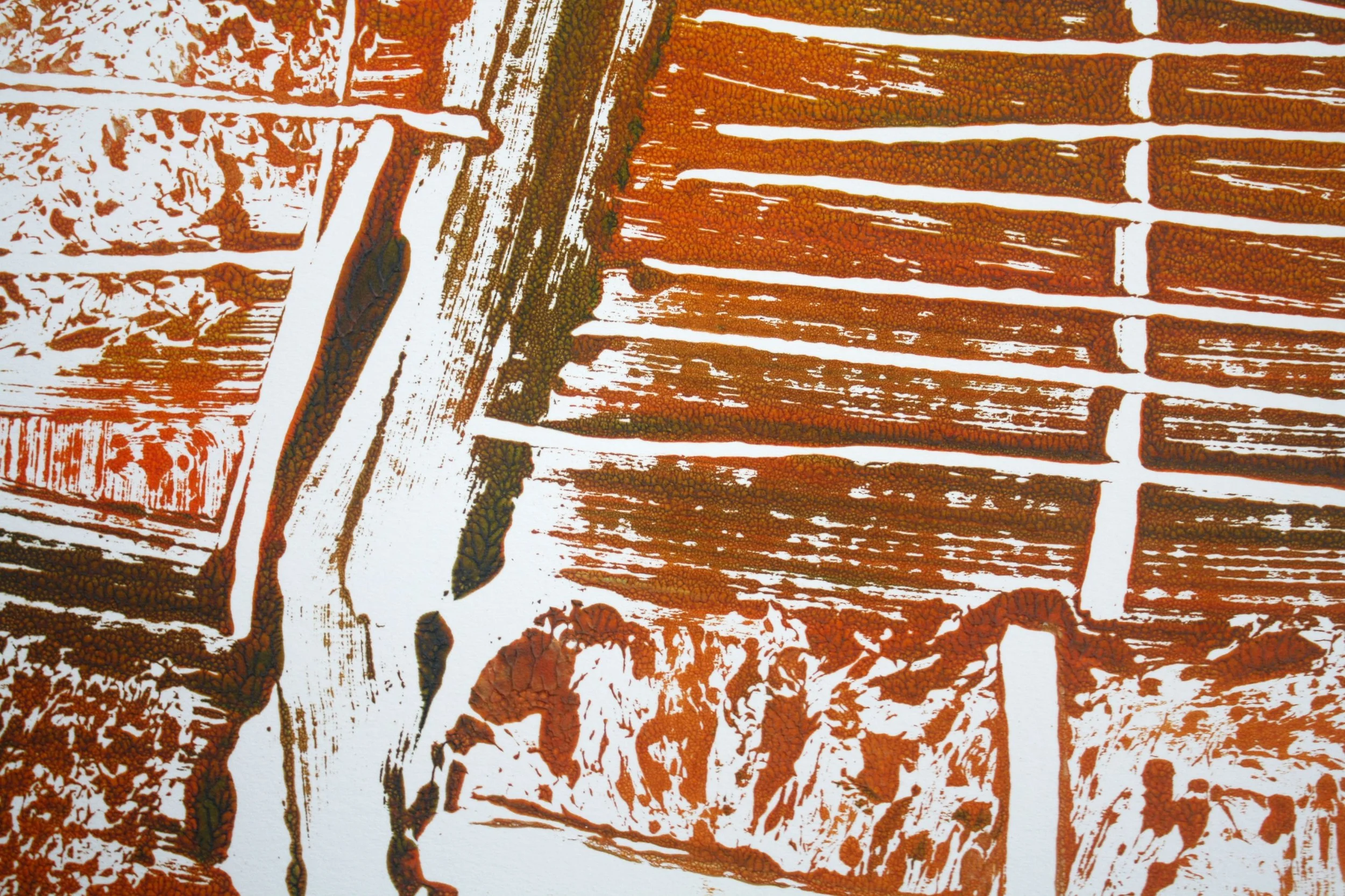 From the same painted glass surface, here’s the 2nd print below, a much finer texture although marks are more faint. I prefer this print, the colour looks more rich and I can see the ‘noise’ in the print, every brush mark. The quality of mark that tells you its a print.
